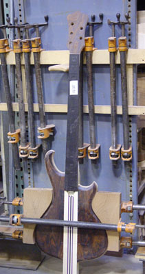 This should help you have a really great weekend. Earlier this week, the fingerboard was glued to the neck: