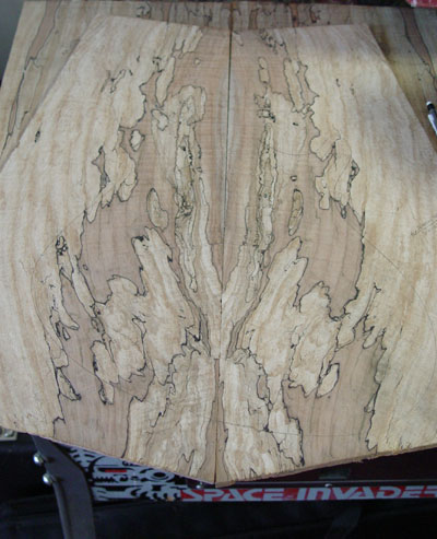 We were going to make him a Spalted Maple Excel last year, but opted for Walnut since we didn't have anything stunning in the Spalted department. We chanced upon these pieces with great flame figure, great color, great spalting, and not totally punked out.