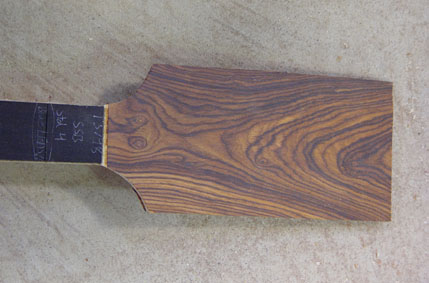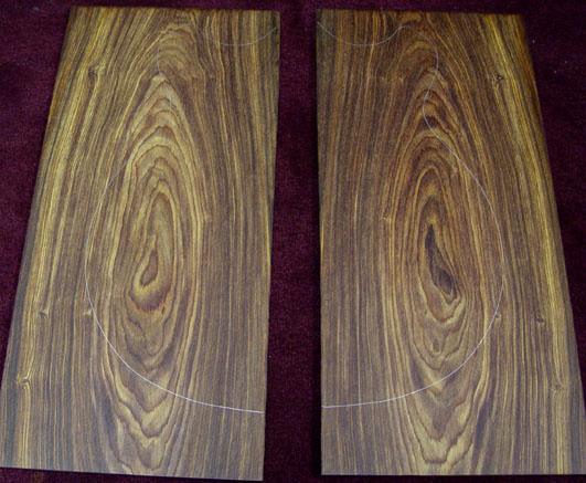 These are freshly sanded surfaces, and look more yellowy-orange than the finished color will be. Both also have a matching back laminate.  Of course it will be impossible to perfectly match the other piece you saw on a finished bass, but I think these capture the color and figure requirements well. Let me know what you think.