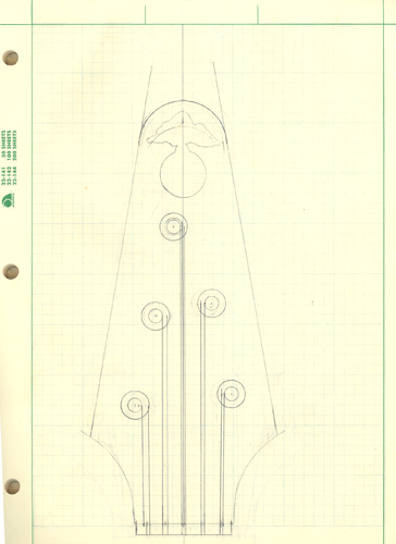 First on the drawing table, your request for 5-string straight pull cone peghead: