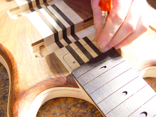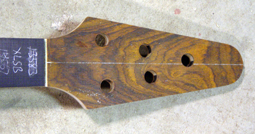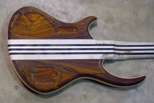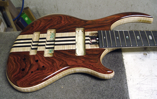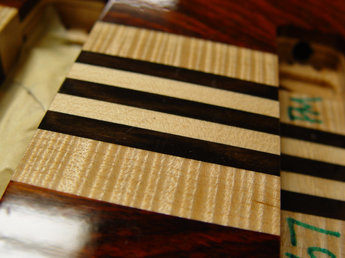 And today the hardware will get mounted and prepared for chrome plating.   Thought you'd also like to see how nice the Flame Maple in the neck was turning out:
