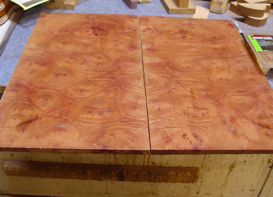 This wood smells like, well, camphor! Probably because that's what it is. I've only got the one piece, but more is readily available. This is wide enough for a bookmatch to center Small Standard body - but not long enough for an Essence or other shape with an extended upper horn.