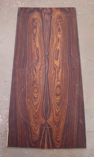 This bookmatch is long enough to yield a top and back for the same instrument, suggestion for a Small Standard top penciled in.