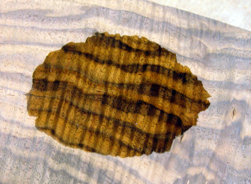 Neat wiggly zig-zag stripes with deep flame figure. 8.5 x 26 x 3