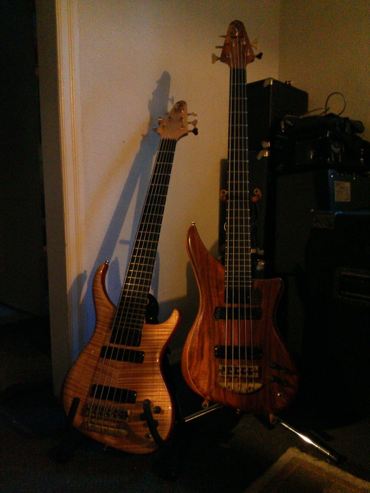 Those are all beautiful basses! Mine only has my mom's initials at the 12th fret. I don't miss the neck inlays at all. As an ear player, I instantaneously count the number of frets up or down from where I am at the moment and shift accordingly. It becomes subconscious and seems to work for me. Most of the time, that is...