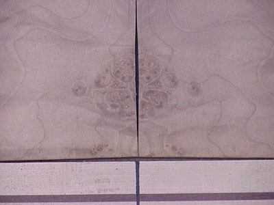 All over quilt pattern, light and dark color streaks with scattered burl figure.