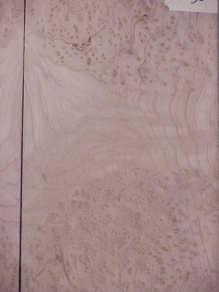 Top and bottom have heavy burl pattern, with a filling of flame figure between