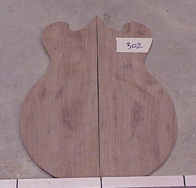Nice wavy grain with prominent flame across pickup area. This bookmatch is over 10 years old. Small Standard body shape, suitable for guitars and short scale basses.
