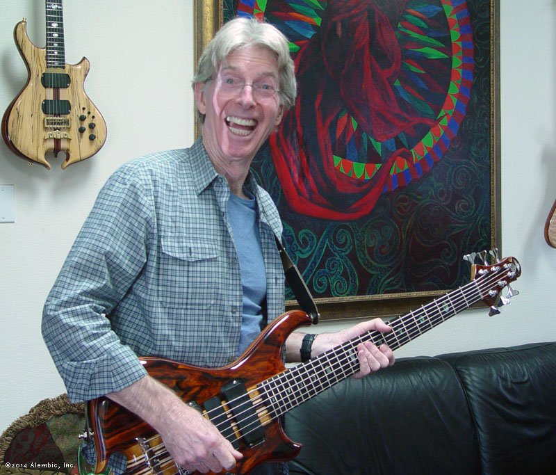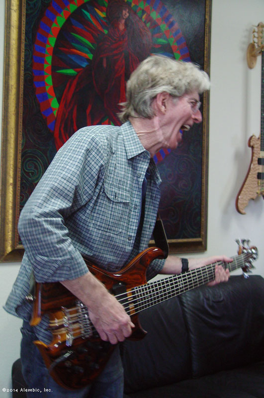 Details on the bass: Series II 6-string custom string gauges: .040 .055 .070 .085 .100 .115 neck: Mahogany, Maple, Walnut, Purpleheart, Ebony scale length: 32" medium neck contour: Shallow "C" fingerboard: Ebony with abalone ovals, custom narrow spacing peghead shape: Knobby with front and back bevel body: Coco Bolo, Maple pinstripe, Purpleheart accent laminate, Mahogany core body shape: Balance K with heart omega hardware: chrome, continuous wood backplates and truss rod cover birthday: August 26, 2014