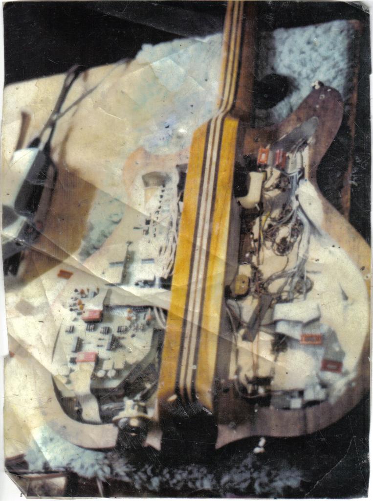 Phil was experimenting with the effect of different string anchoring systems around that time. It's also visible in the first post in this thread with individual tailpieces for each string and below with the same. The shot with plate behind the Badass looks to be an intermediate step between the original setup and that shown below from '79 (right before Mission Control was retired). The plate covers the tailpiece mounting holes and there are no signs yet of holes for the individual tailpieces.