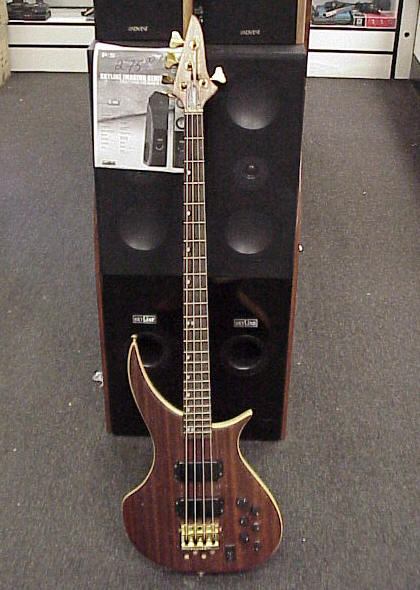 This is the HOYER T-Staxx Bass made in Germany about 1985, you can see the 0-Fret and the very small neck (the fastest neck ever built. I play one of these and have to say they are very Alembiclike)