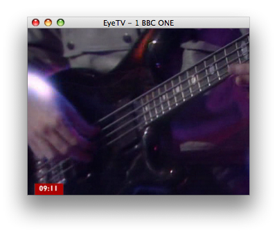 I saw an article on bbc this morning about Simple Minds and in the film clip of the band appearing on Top of the Pops, I noticed the bass player was sporting an Alembic. I have no idea what the guy's name is or what model of Alembic but maybe you can tell.  Here are the screen captures.