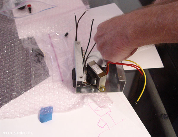 3. Most components are mounted on a new printed circuit board (represented by a metal plate under my dad's hand). Whopiiiie!