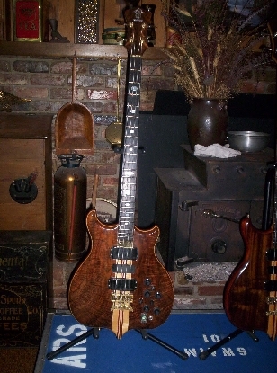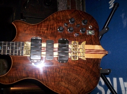 Before I could leave late in the morning Tuesday to run my errands a noisy brown truck pulls up bearing gifts. I knew it was coming today I just did'nt know when, and certainly not this early. I was in a rush to get my things done.....but they could wait a little longer. Lugged the BIG BOX downstairs and proceded to unpack this beast. This beautiful bass was strung with flats(I'm a round wound guy) and I was interested to try them out on an Alembic. It of course sounded very good, but these were'nt my cup of tea..at least on a bass like this. Fast forward a few hours. Slapped some stainless baby's on there lit up the L.E.D's and the bass truly came to life. To me flats just don't do these basses justice. I can really hear what the filters are doing and with those flats it was very diminished. Well enough yapping here it is
