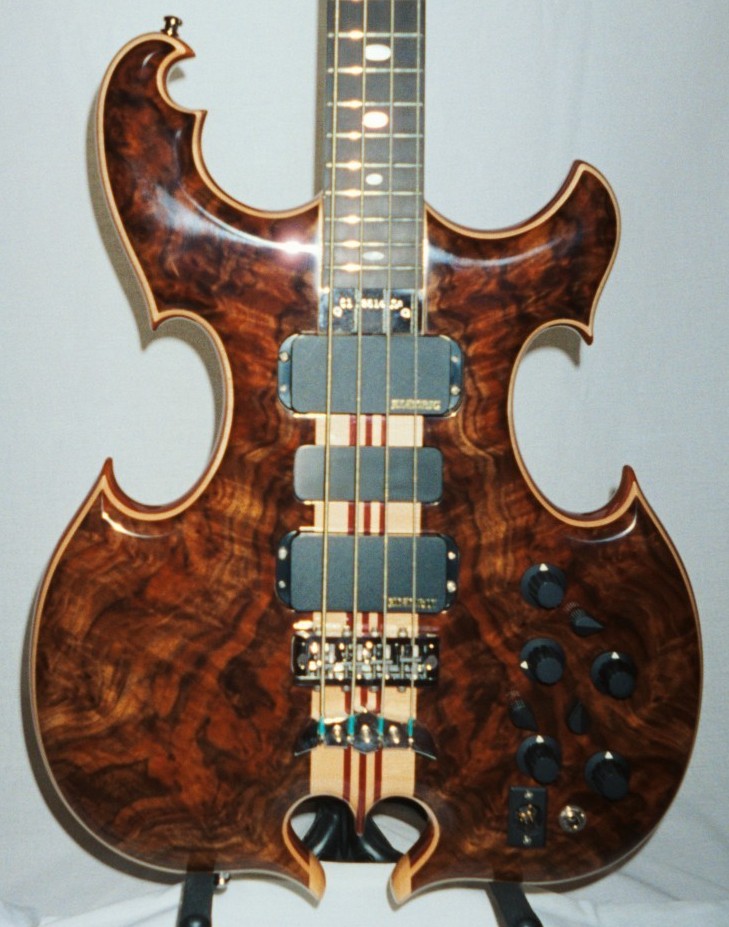 Yes, this bass is absolutely stunning.  Congratulations!  Walnut is such a nice wood.  I was recently at the dudepit site on ezboard.  There is a thread there where a luthier compares the sonic properties of walnut to cardboard.  I was wondering what you think Rami comparing all the basses that you have.  Knowing how the Dark Prince sounds, is walnut something you would consider putting on another one of your basses?  I am considering walnut for my next Alembic.