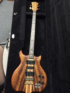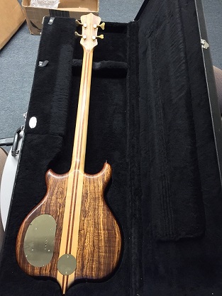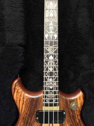 Wow congratulations!  That's a great looking bass with some gorgeous inlays.  Wonder what's up with the 2nd XLR connector?  And are those thumb rests near the bridge pickup?  Just a guess.