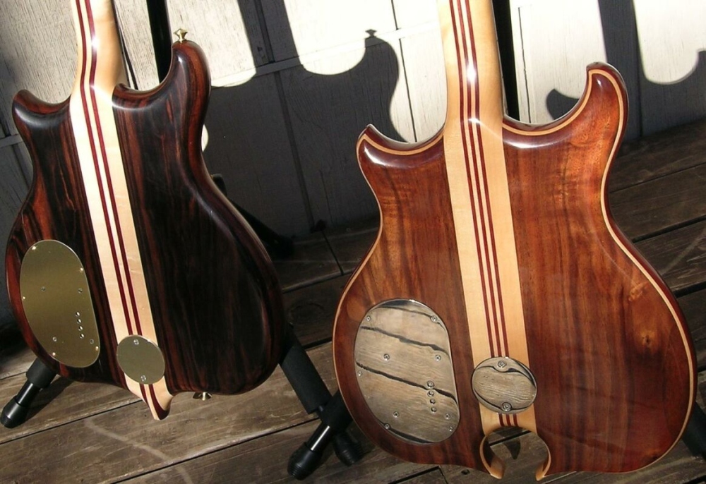 Redundacy???  Not in my book.  The more the merrier!  Two sweet basses are always better than one.  You cannot see the graphite rods in the Series I's neck, but you can tell they are there by the solid feel when playing and even tuning up.  I don't know why Alembic quit implanting them - Duh!  Ebony lams took over!  I cannot remember how much the rods were, but when Susan told me about them I just had to have them.  These two basses do sound quite a bit different.  So no redundancy issues here.