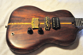 I'm kinda sorry to say that the first thing that came to mind seeing this guitar was a Thalidomide baby; the proportions of the upper bouts is so small that they look stunted; of course, being electric it doesn't need bouts...amazing workmanship though and the inlays are beautiful...likely it doesn't look so stunted hanging off a person, but sitting in a case it does to me...Tony