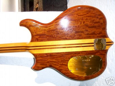 A previous owner of this bass and I had an email conversation some time ago, and he sent me some pictures. My guess was that the top was Vermillion or Purpleheart that had faded.