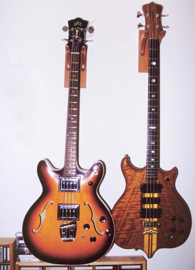 Actually, I have another red Guild that I play much more often. I was inspired by the Alembicization of the Godfather and Mission Control, so I added Bartolini pickups and preamps and a Badass bridge. It  can sound very much like those basses (and in fact, I managed to get both Phil and Jack to sign it!) but it also does a lot more. I used to have a third Starfire, but it was a 70s version with humbuckers and I had to pay the rent, so I sold it. I don't think I paid more than $400 for any of them, the deals are out there if you look carefully. The tragedy about the sunburst Starfire is that the headstock was broken off and repaired in a very clumsy way at some point. I guess that makes it a good candidate for headstock replacement by Alembic! I'll try to find a picture of the red bass and post that.