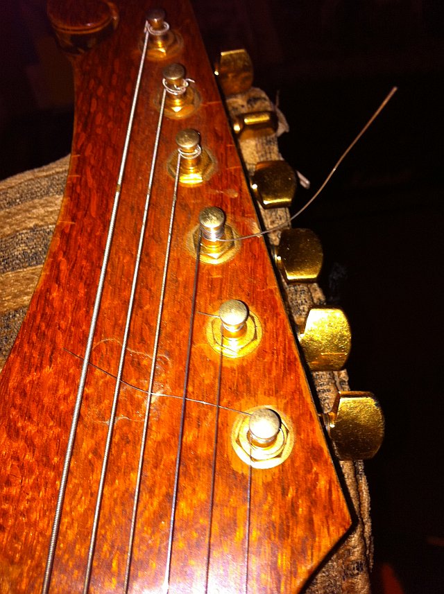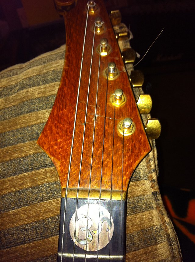 Whoops; fell behind on my email. Trae sent a couple pics and a note in response to the questions about the logo. 'I took some detailed pics of the glue on the headstock where the Alembic logo was...according to my dad it came off several years back. He moved since then but he is certain that he still has it. There have been a few posts regarding the missing logo so I thought it would help answers their