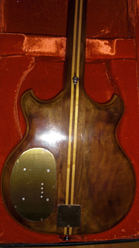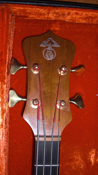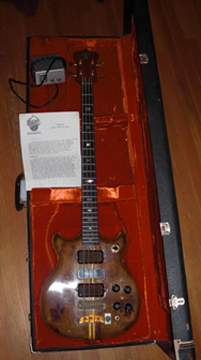 Upon opening the case (black with 4 latches) I saw a near mint, barely played 75 short scale walnut bass. I've asked Mica to see if the build card still exists.  Lovely - light at 8.4 lbs, GREAT finish with nary a mark and the straightest, smoothest, fastest neck and frets I've ever felt.  Original Alembic 5 page users guide and a silver colored DS5 just like the one I have with my 74 shortie.  I'll setup some more pictures, but here are a few.  I feel very lucky tonight!  Best regards to all, Todd