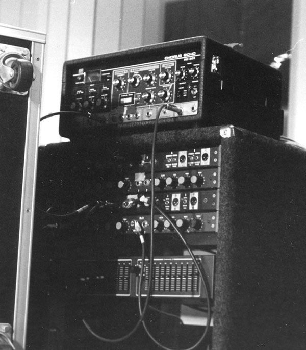 Hello, here It's my old short scale "Stanley" from 1983 (?) if I remember. I sold them unfortunatly. It's me, with my band, I used 2 input modules, 2 Alembic preamps, one dual-channel equalizer, 1 cross-over, 1 Roland Chorus Echo, 2 power amps Yamaha and 4 X 250W (3 ways) Electro Voice  speakers, same amplification of Clarke at this time.
