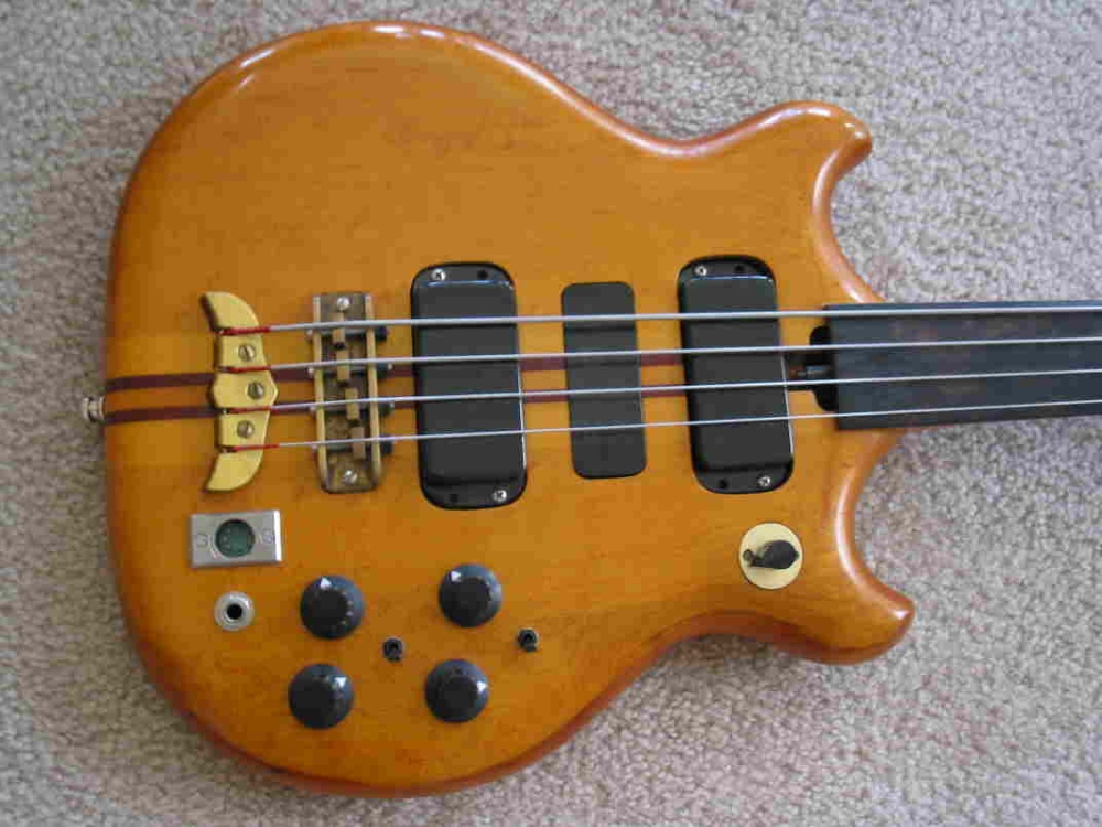A wonderful instrument with a bit of a storied history - it was owned by Steve Fossen, founding member and bassist for the group Heart. This old alembic is something special, and has the same feeling of elegance and refinement that you may find in, say, a beautifully made antique cello. We here at bunnybass like Alembic basses a lot, we consider them one of the real legends of the bass world. And those made from the early 70's to around 1978 often seem to have something very, very special about them. They vary in feel a lot, and many of them feel like custom basses with real individual personalities, like they've received a lot of special care during their construction. This bass is definately feels like it received a lot of extra attention, especially in the fine carving in the neck and body - it's so round and soft!
