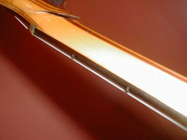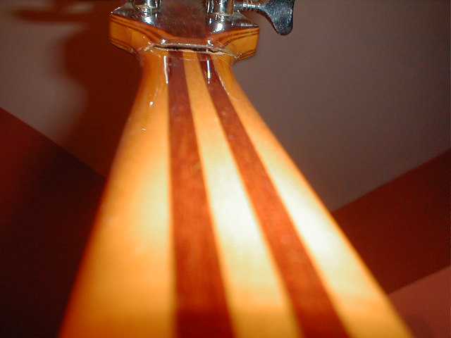 Even with the cracked headstock it still plays like no other bass I have ever played and holds it's tune solid. THe action is not effected bu the damage. That is hard to believe when you see the next shot.
