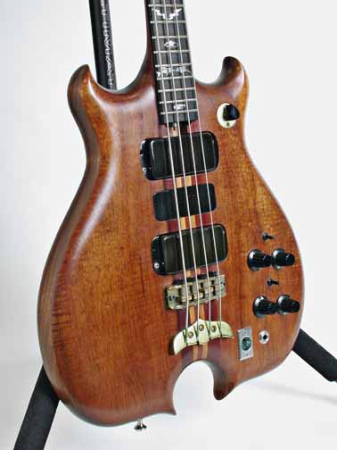 Yes , the neck is purple heart with maple, although the purpleheart has lost some of its purple and faded to brownish. Top  and back are koa and the body is walnut. She is 1976 vintage, #489, short scale with a narrow neck and string spacing. She recently had a fret job and a finger board planing, with the result being that some of the inlays lost their sharp edges. I suppose at some point she'll need to be sent to the mother ship to effect some inlay repair. I was also thinking about the electronics upgrade, to bring her into the 21st century.  Anybody out there have the upgrade done, and did it make a difference? This  is a great club to be in, and thanks everyone for the warm welcome!!!   All the best.
