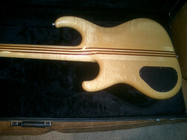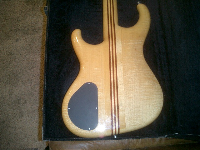 Very pretty top, looks like superb flame walnut to my eyes.  And the back looks to be flame maple maybe?  This would be a little unusual as most I've seen have a mahogany back.  You definitely have a very nice axe there.  Hang around these parts a while and I think you'll find the members to be as special as their Alembic instruments.