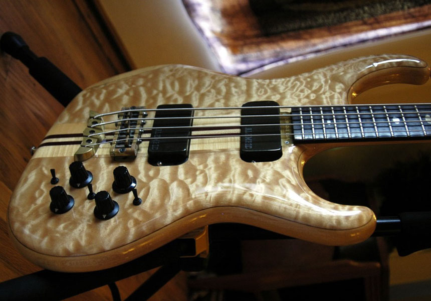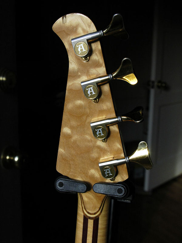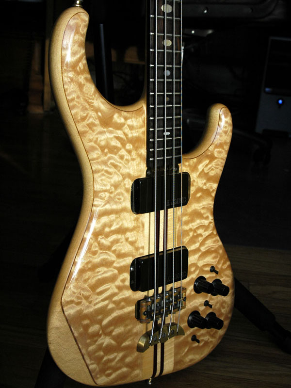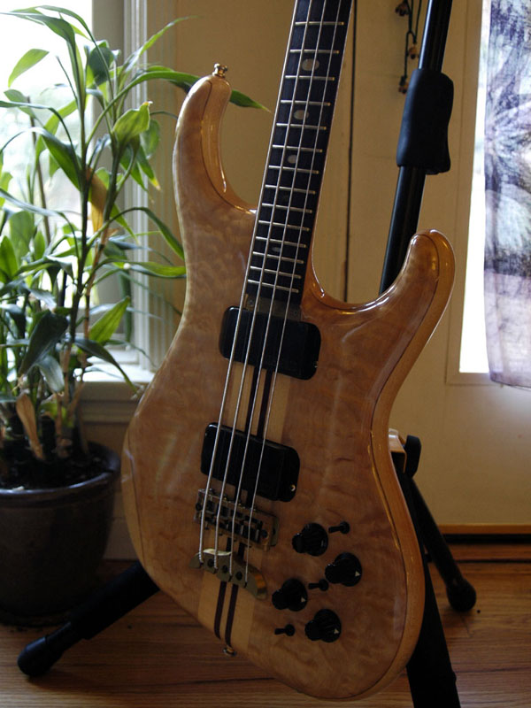 Hello, fellow alembic lovers!  My Alembic ?lan is 20 years on December 5th.  I put the order in with Alembic in August of 1990, and I picked her up from The Bass Centre (L.A.) on December 05, 1990.  Here are some specs: Maple body core, walnut and quilted maple top Maple and purple heart 5-piece neck, brass nut, dual truss rods Macassar ebony fingerboard, oval mother-of-pearl inlays, side LEDs, first fret marker, 26 frets Stanley Clarke signature electronics, side mount jack, brass sustain block