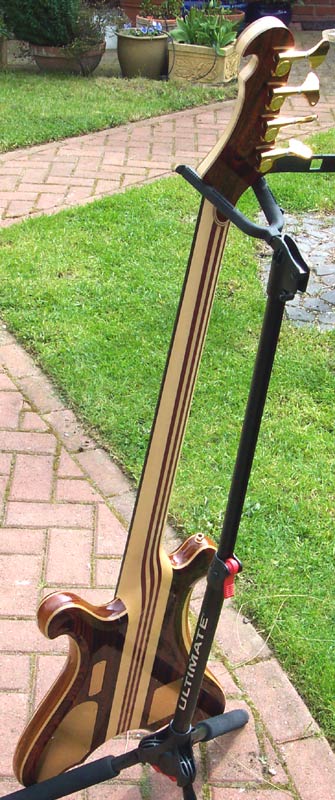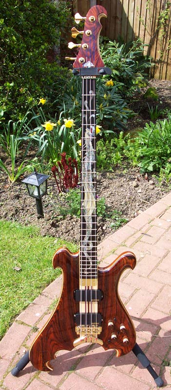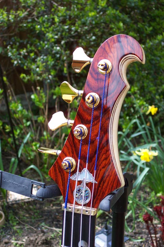 These pictures are the first I've seen of your bass that really do it justice.  The inlay colors really pop and the wood looks delicious. The carving on the peghead is exceptional.  Overall, it is both a beautiful and dangerous looking instrument!  You are most fortunate.