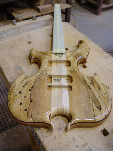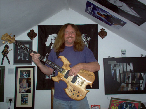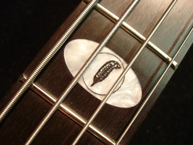This looks like the bass that turned up at the bass centre in the UK a short while ago. I was intrigued by the upside down lefthanded stringing although the bass player with hayseed dixie has the same. At the time I saw it, it was heading off for a special engaving, presumably the truss rod cover. Fantastic bass collin I'll send my left handed daughter down to steal it ;-)