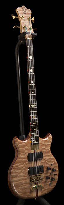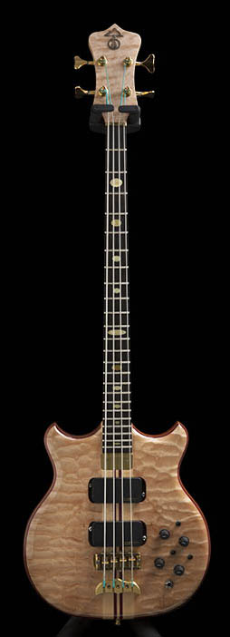 I finally got around to taking some decent photos that are worthy enough to show off this wonderful instrument. It is my first Alembic and is the inspiration for my Alembic Forum user name.  It features a 5A quilted maple top and 3A quilted maple back. Hippie body sandwich is maple and mahogany with purple heart accents. Headstock veneer is 5A quilted maple.  Interesting bit of trivia - a photo of this instrument was used to illustrate the function of the signature controls in the FAQ section: