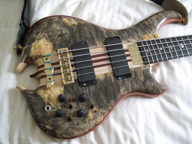 I was speechless when I received this picture when they shipped the bass, but was speechless again when I opened the case, there is a quality to the finish in the shine, colour and the depth of pattern that just can't seem to be photographed.