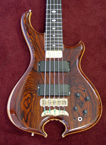 The origin of this bass is quite a long story, which I won't put here, now. Suffice it to say that this bass began it's life because of a slip/trip with a router at the Alembic factory. However it started, I'm happy to be the owner of this incredible instrument.