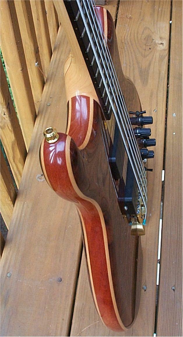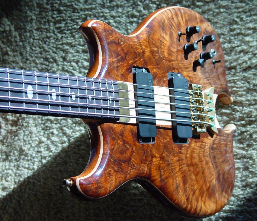 Here's a pic of my Jimmy Johnson 5-string, mahogany core, maple accents, crotch walnut facings, 34 scale, 20th Anniversary electronics... luscious!
