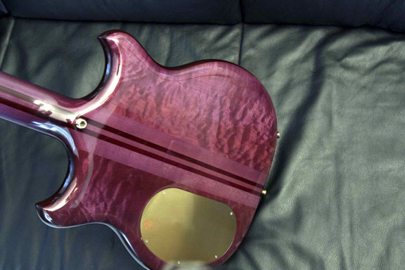 Wow.  To be honest, I'm usually a purist about keeping pretty woods natural.  But I just spent a few minutes looking at the way the transparent plum coloring works with the quilts and the neck wood underneath.  Truly unusual and beautiful.  You are very fortunate - I'll bet you get frequent compliments.  The finish is really captivating - a totally different take on the small standard!