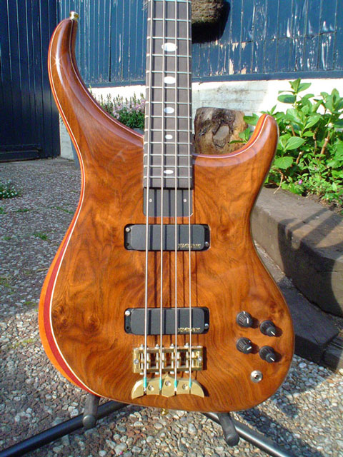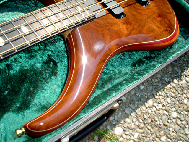 My new Orion, carrying some pretty distinctive custom features. Quite a unique instrument. A spectacular bass in every way! - walnut, maple, purpleheart and mahogany body - purpleheart neck laminates - mother of pearl inlays - crown headstock