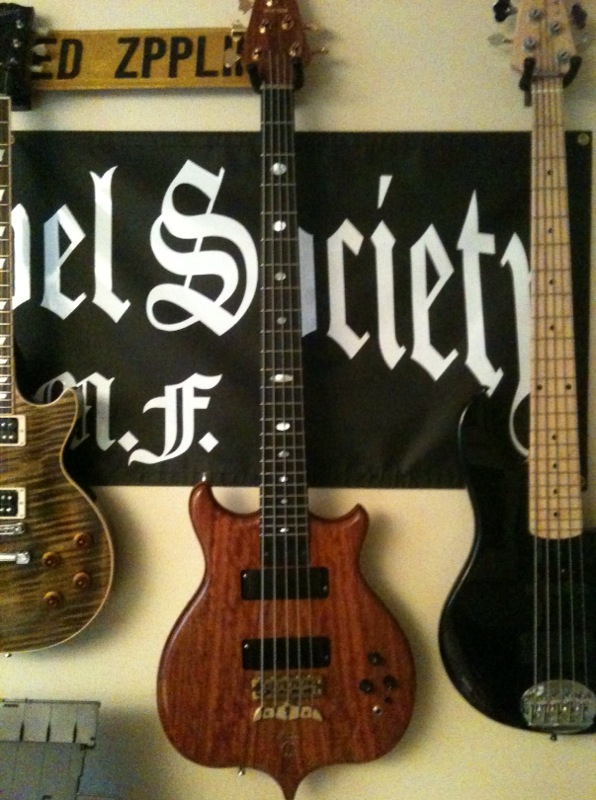 Well, this beautiful bass has a new home now.  Mine!  It is my first Alembic and my first 5 string, so I am pretty excited.  I thought I would mark the occasion by posting a new pic of the Big Kahuna in her new home.