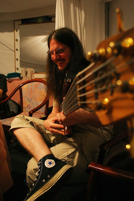 It's a really cool photo, just a funny depth of field problem that seems to draw the eye right to the shoe, leaving those of us in the know to hunt out the Alembic logo. But the smile is a good clue.