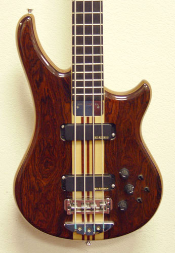 Yeah, I missed this one! It's got Europa electronics, no neat ricks except for they are arranged in my favorite happy face configuration. The hardware is chrome plated, and I opted for the fancy curved rail concealed hardware bridge.