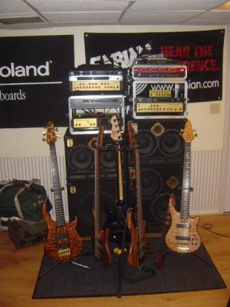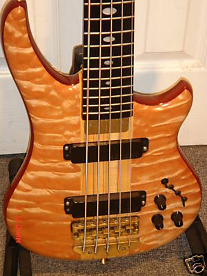 Alembic Essence-5 W/Europa Electronics and LED's, Peavey Cirrus-5 Tiger Active, Peavey Grind-6 Bubinga Passive, Peavey Grind-5 Walnut Passive, Peavey Millienium 4 Passive; Ibanez AEB-305 Active, Ibanez Phantom 4 Solid Body Bolt-on Passive,