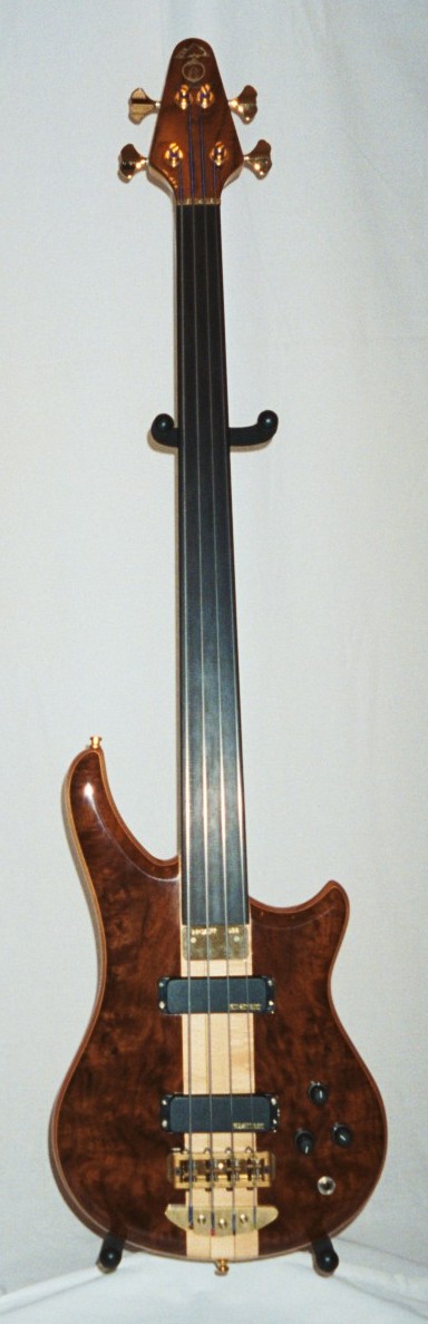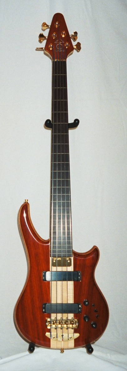 This is my fretless 5 - with inlaid fretlines - the top is Vermillion with Rogue electronics.