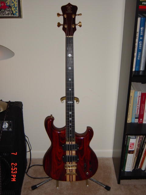 beautiful coco bolo top.   I'm curious about a couple of things, did you have it converted to a fretless yourself? I'm asking because I see that you have the oval inlays on the fretboard, which leads me to believe that this baby was not born a fretless.  When I inquired about turning one my basses into a fretless, Mica pointed out to me that sliding over the inlays would produce a different sound from the ebony wood, so I guess my other question to you would be : how does it sound when you slide on the inlays?