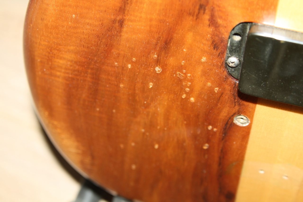 Here are some pictures of my Spoiler. With a flash you can clearly see the dings and dongs (it looks like the bass was on a battlefield..) Without a flash the bass looks fairly unharmed...