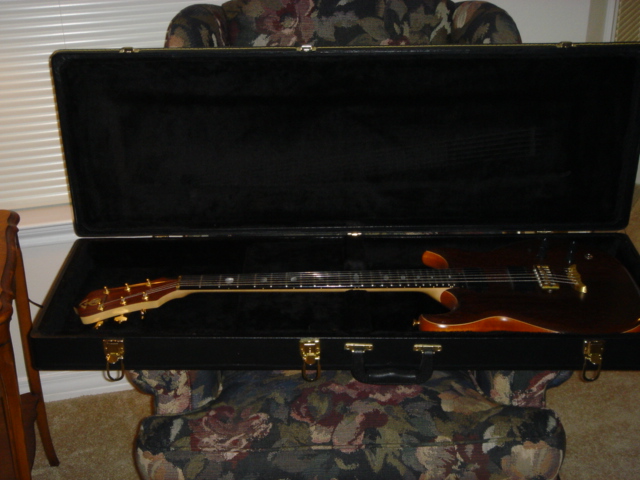 My only complaint is the instrument's weight and the very heavy headstock which causes it to slide down unless I'm holding the neck. It'd be great to get a chambered Electrum. Oh, and the case (after market) in the pics is the one I have with it. It sucks and is way too big for the guitar.