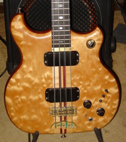 -Anvil rack holding a Trace Elliot V-Type tube pre, QSC MX700 bridged mono, a self-designed and built cab (tuned to 35hz) holding a Cerwin Vega 12, an MCM 5 poly cone mid/high driver, an 1800khz 18db/octave xover w/a 100w L-pad.
