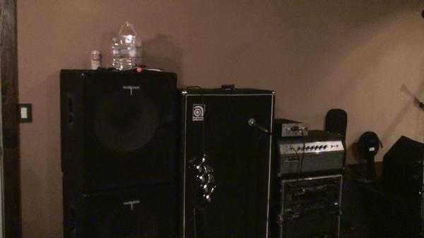 Hey Chalie,   That's exactly who I'm talking about and yes, Evan is a super cool guy. I've known him almost 20 years since him and Chad were at Seattle Music. I just spoke to him yesterday as a matter of fact. He's a well respected businessman and musician here in Seattle and I'm glad I know him. Where are you at, anywhere around here? Here's a couple of photos of my stuff. The instruments are L-R; 73 Jazz with Lindy Fralin pick-ups, 76 Precision, Chris Squire Rickenbacker, Peavey Strat, Alvarez Acoustic, Aria Acoustic Bass, Alembic Distillate, Yamaha 5-string fretless, BC Rich Heritage Classic, Modulus Genesis 5-string, Modulus Flea Bass model, 73 Gibson Grabber, Epiphone Viola, Casio 88 key digital piano. Amp Rig; Ampeg SVT-VR, SVT 8x10, 2)Madison 1x18s, Avalon preamp for recording. In the rack; Korg Tuner, Nady 201 wireless, Trace Elliot preamp(backup), BBE Sonic Maximizer, Furman power conditioner and an Ampeg SVT 1600 power amp used to power the 18's or as a backup amp with the Trace.  That just about covers it!  How do you like the bass clef I free-hand painted on the wall?   :-)